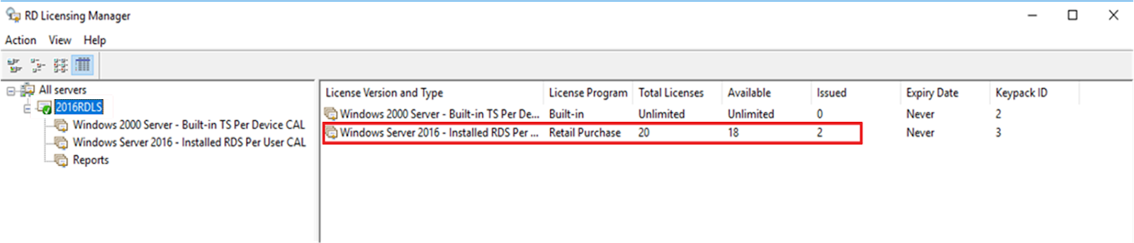 Entre no Host da Sessão RD como um administrador de domínio e abra o Diagnosticador de Licença da RD. Procure mensagens como a seguinte: