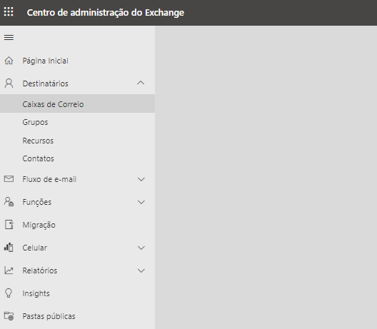 1- Acessar centro administrativo do Exchange, vá em Caixas de Correio